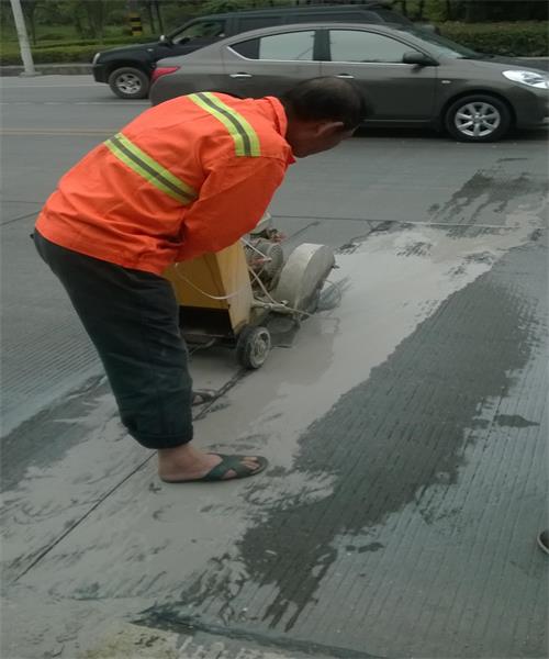 使用切割機(jī)沿劃出的平行線進(jìn)行切割,切割深度達(dá)到8-10cm。注意及時使用清水沖洗地面,防止看不到線而切偏。