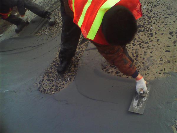 4.當(dāng)所有準(zhǔn)備工作都完成后,使用已經(jīng)攪拌好的水泥路面修補料對露石子部位進(jìn)行修復(fù),用抹子刮平材料,收光,整個修補過程應(yīng)該控制在30分鐘以內(nèi)。